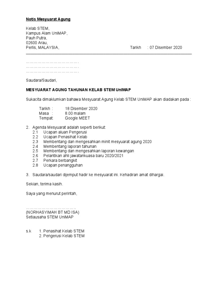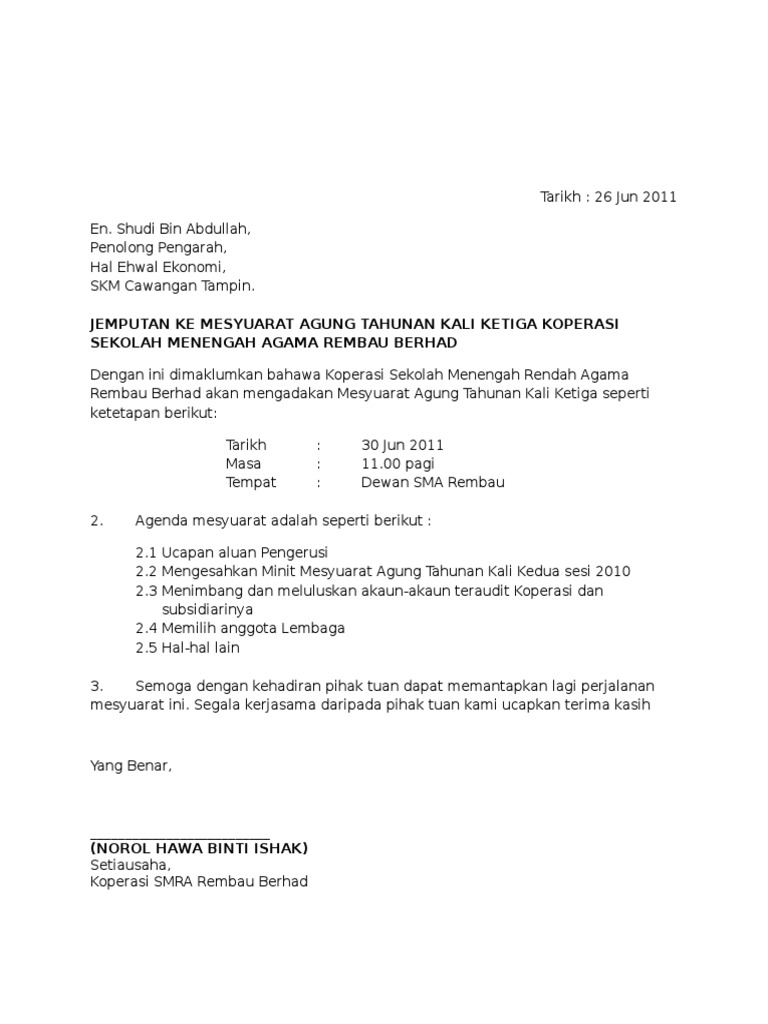 Surat Jemputan Mesyuarat Agung Tahunan Kepada Skm Pdf